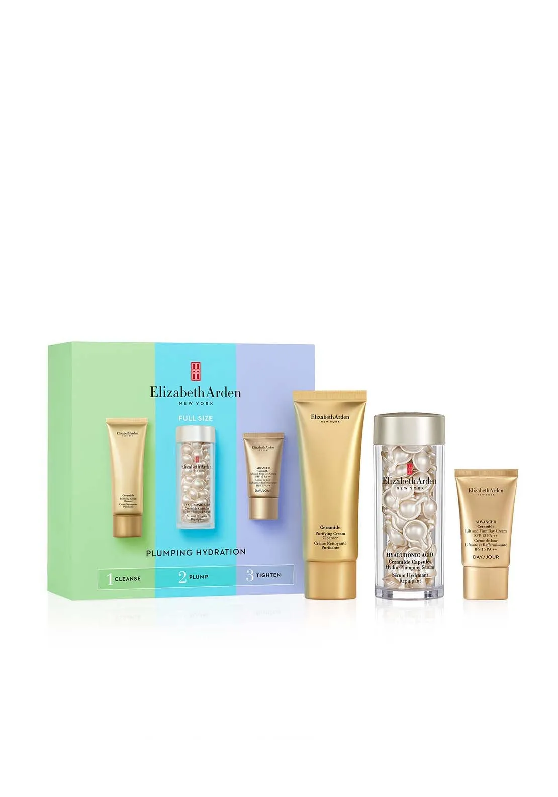 Introducing the Plumping Hydration 3-piece gift set featuring Hyaluronic Acid Ceramide Capsules to seal in moisture for plumper-looking skin in every potent capsule. The set includes Advanced Ceramide Lift and Firm Day Cream SPF 15 PA , which provides all-day hydration, protects and lifts for a more sculpted look and Ceramide Purifying Cream Cleanser, a gentle but powerful moisture-enriched cleansing formula. Includes regimen instructions for best results.