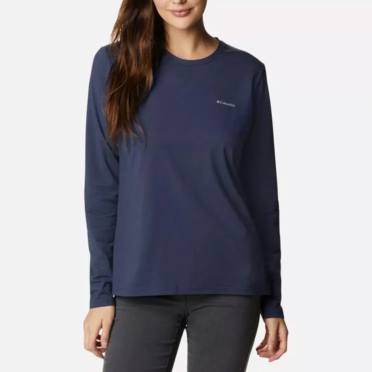 You'll be ready for sunny days in this sporty long sleeve tee with built-in UPF 50 and wicking power.