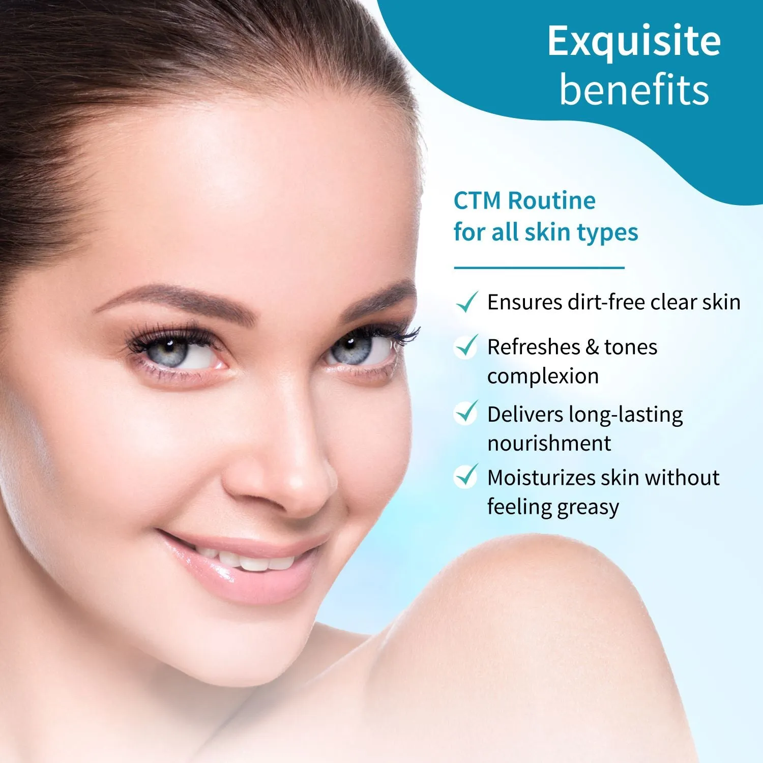 Ayouthveda CTM Routine for All Skin Types - a perfect amalgamation of three powerful formulations that work together to give your skin the ultimate care it deserves. With Ayouthveda Charcoal Face Wash, your skin will experience a deep cleanse, pore-refining, and exfoliating benefits while protecting against pollution and controlling excess oil. Follow it up with Ayouthveda Ocean Dew Mist to restore moisture, & tone, and enhance natural radiance. Lastly, nourish your skin from within with Ayouthveda Ultra Hydrating Face Emulsion Cream, which provides intense hydration and shields your skin from external elements, ensuring a fresh, matte, and radiant complexion. Experience the best of nature's goodness and give your skin the care it deserves.