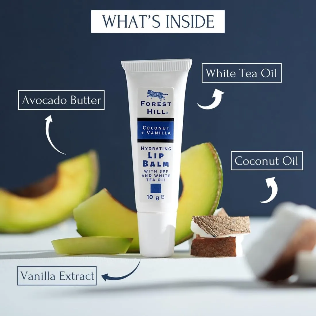 INGREDIENTS Coconut Oil, Vanilla Extract, Avocado Butter & White Tea Oil