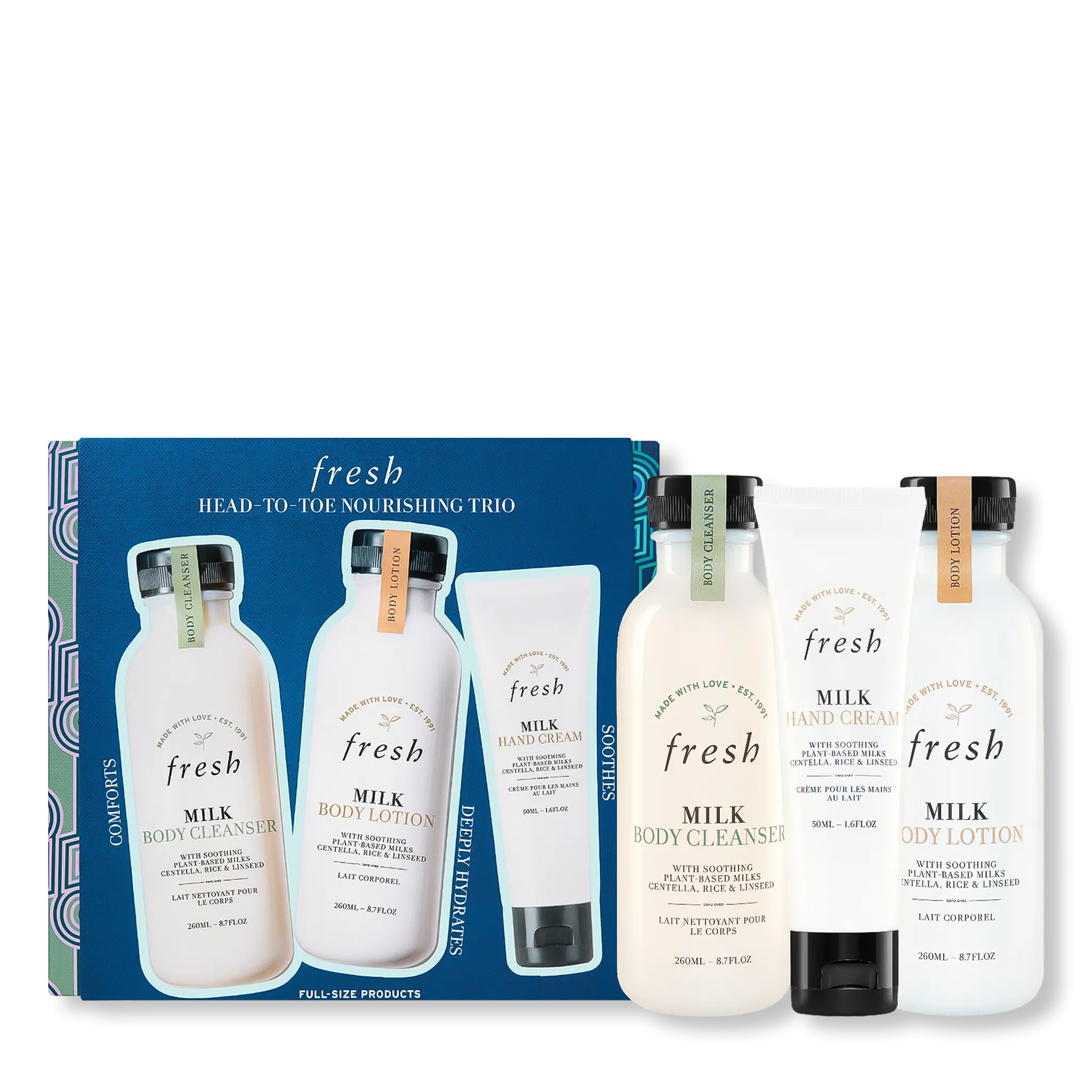 Pamper your body and hands with this full-sized Milk Body Wash, Body Lotion, and Hand Cream, all crafted with a unique blend of plant-based milks.