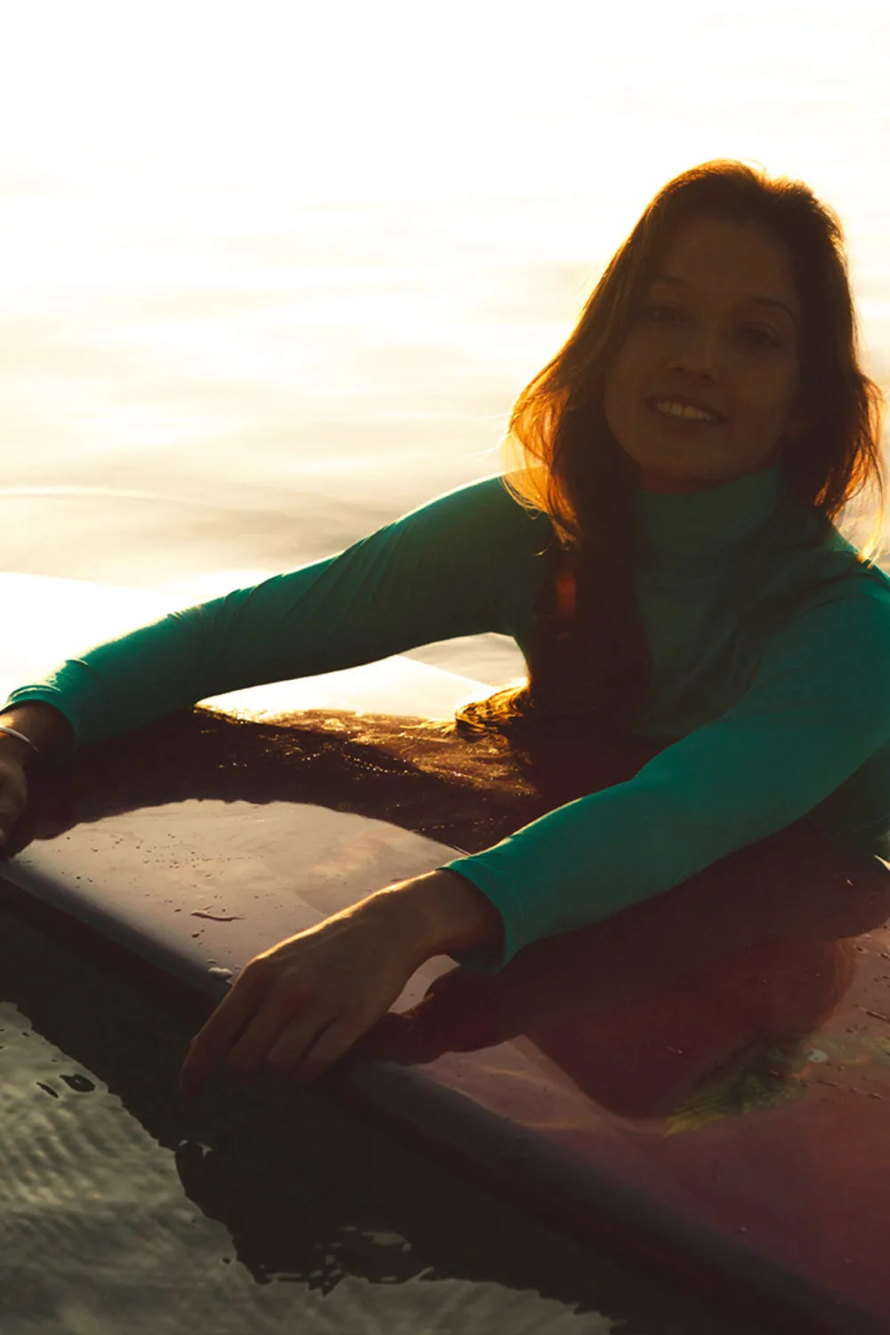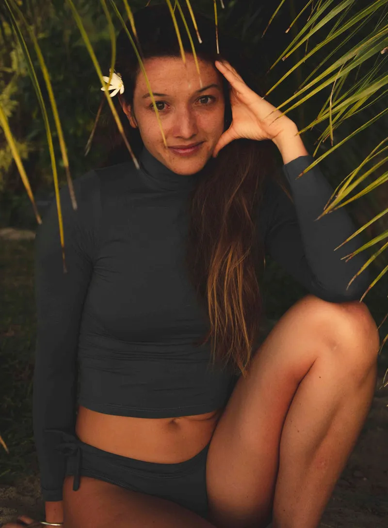 Protect your skin from the sun and feel beautiful in the lineup with our popular Panga Drops rashguard, made in a sustainable fabric made from ECONYL® regenerated nylon.