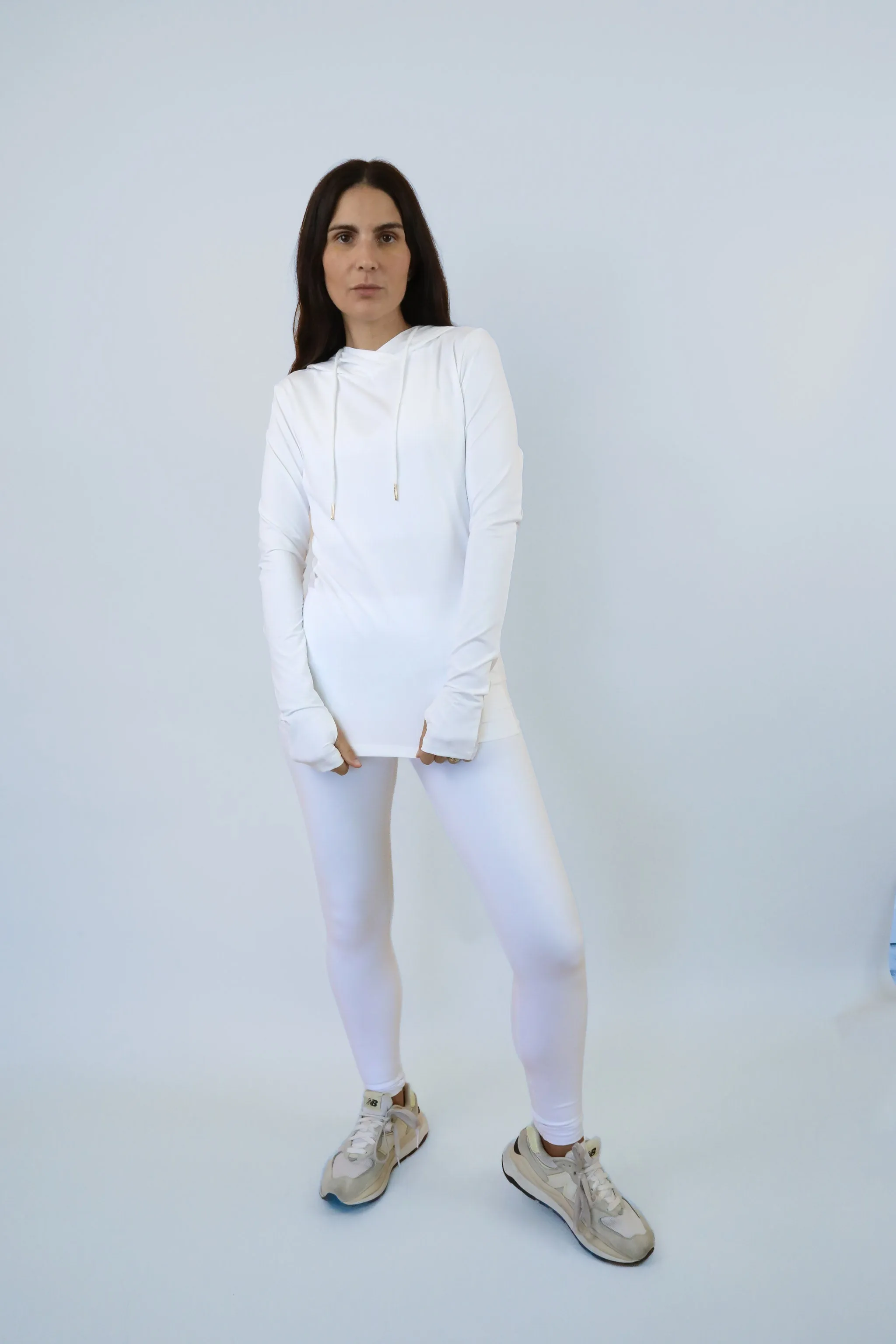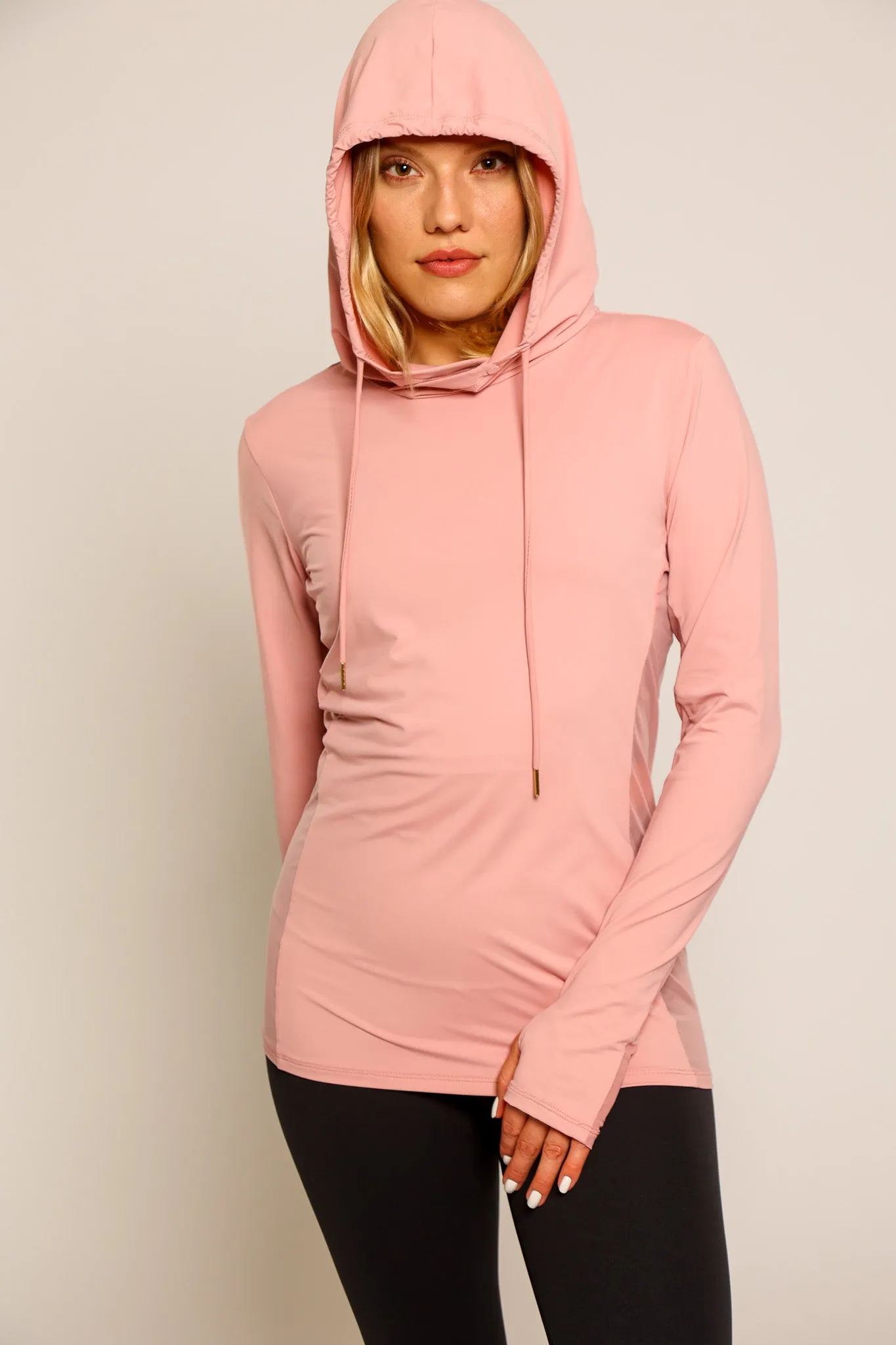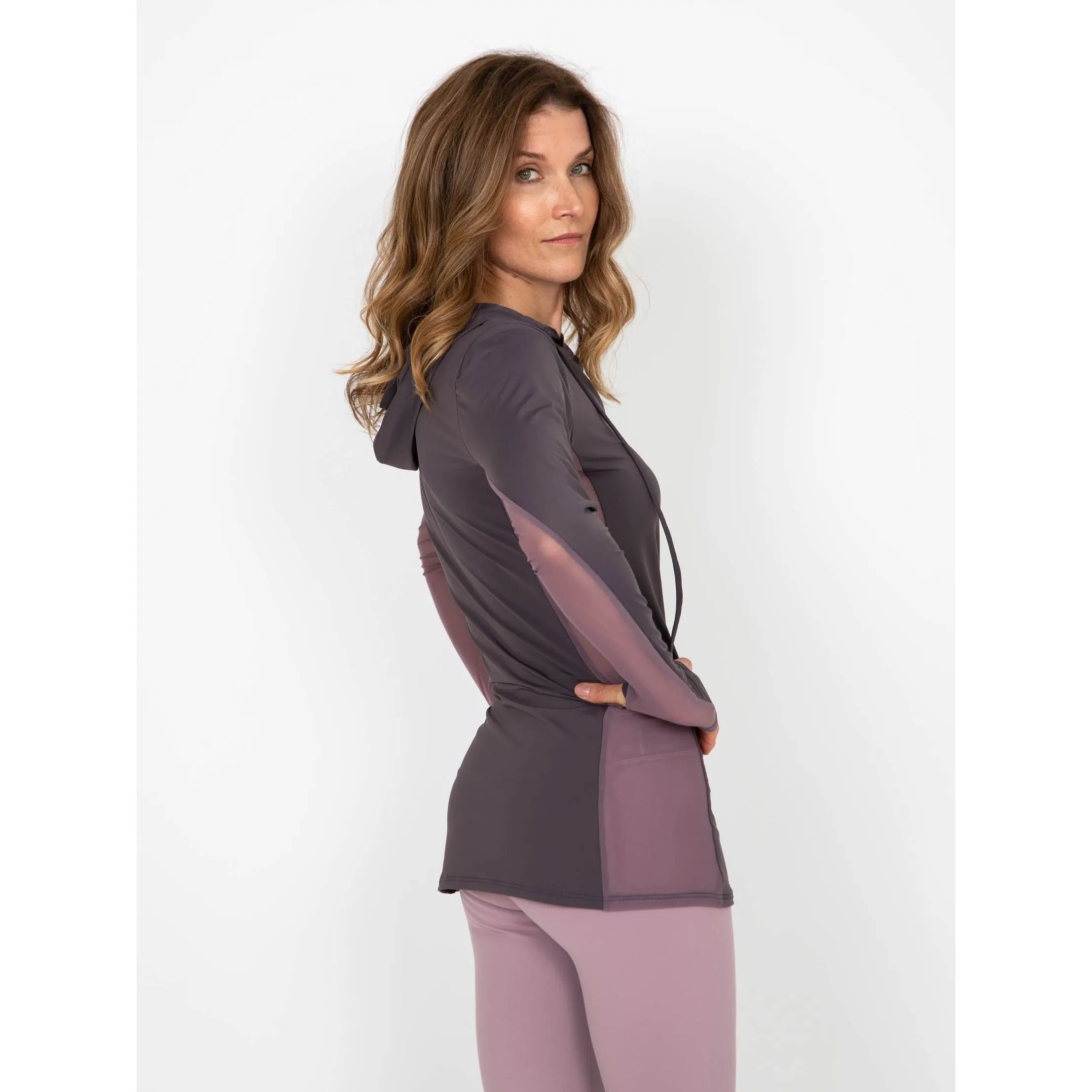 This soft, lightweight sun-protective sport hoodie plus a pair of yoga pants is the perfect UPF athleisure pairing. Mesh side panels under the arms and along the sides allow the air to flow so that you can stay cool while getting maximum sun protection. It’s also great over a bathing suit to protect your arms, hands and chest while you’re chilling on the sand and need a sunbreak.