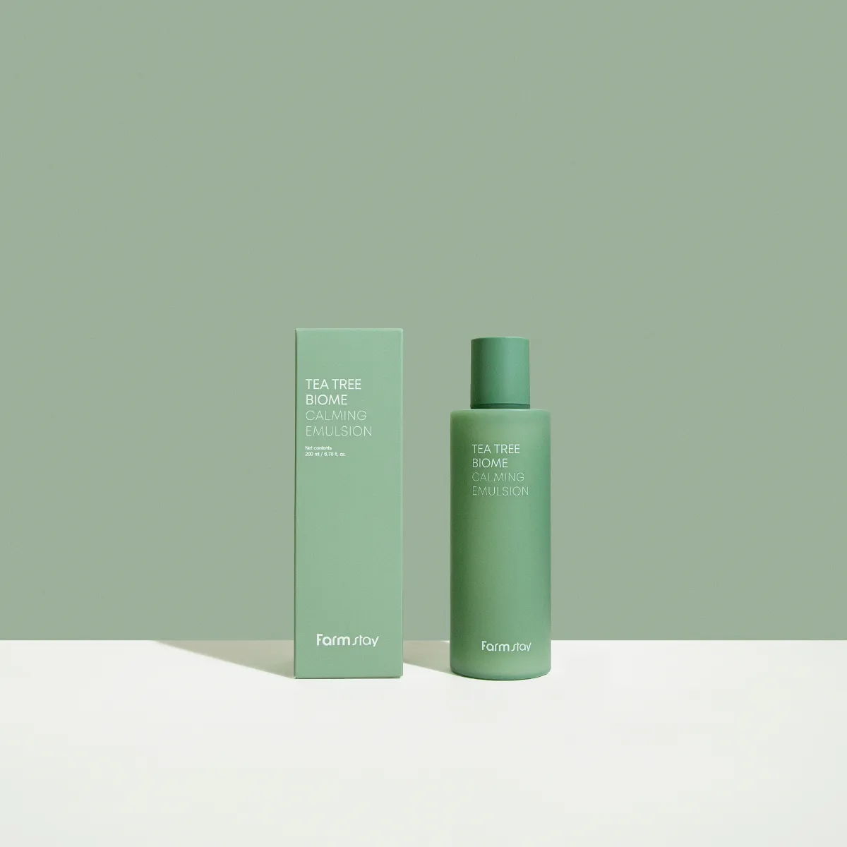Farmstay Tea Tree Biome Calming Emulsion enhances hydration and calms irritated skin with its tea tree biome formula, while also controlling sebum, fortifying the skin barrier, and revitalizing stressed skin.