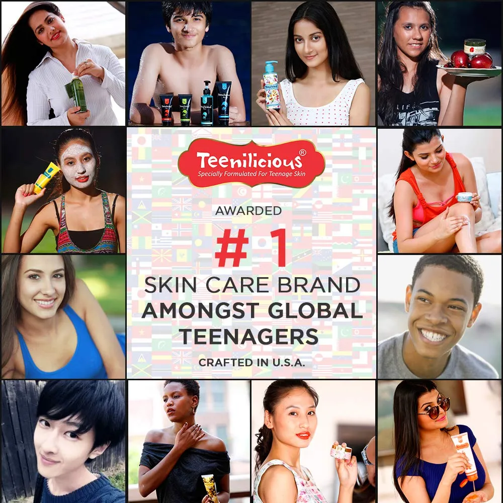The pomegranate Face Scrub by Teenilicious is an effective face mask for acne-prone skin with Tea Tree Oil, Sugar Maple, Orange & Lemon Fruit Extract that encourages skin cell turnover and provides an immediate effect for cleaner skin.