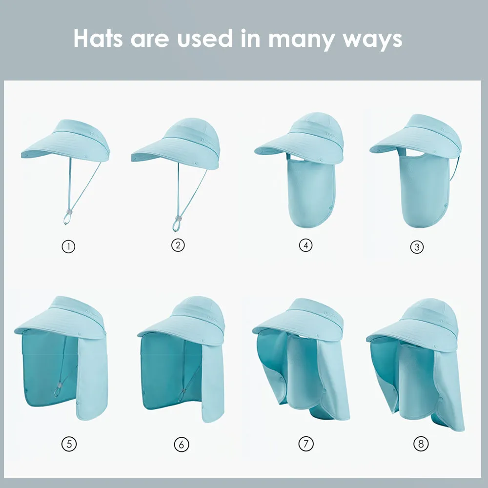 A Full-wrap durable sun protection cap can cover the head, face, back of the neck, adapt to more outdoor scenes. Removable face shield and cape, buy this one and get 5 ways to wear it, which can be adjusted anytime according to your needs. Nose breathable holes enhance heat dissipation and breathability to keep skin dry and comfortable.
